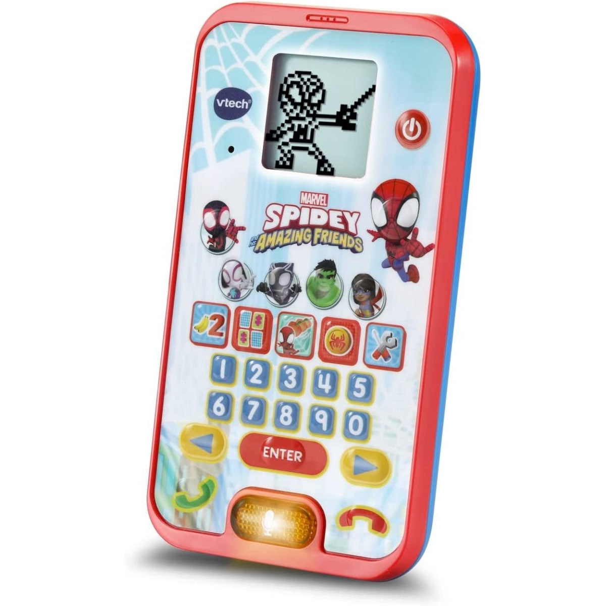 Spidey & Friends are waiting for you to call on the Spidey and His Amazing Friends: Spidey Learning Phone by VTech®, with voice-activated play, your little superhero can pretend to call Spidey & the team for role-play chat with Spidey or hear fun facts about his amazing friends! 4 learning games; count bananas, matching pairs, avoid the pumpkins & matching coins develop skills in problem solving, basic maths and enhance imaginative play. Phone also features fun apps and customisable settings! Your little one can also receive fun voice messages and animations with the 6 cool character buttons: Spidey, Miles Morales, Ghost-Spider, Hulk, Ms. Marvel & Black Panther!